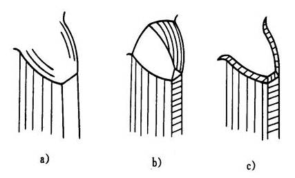 a) Round b) Inverted tip c) Chamfer