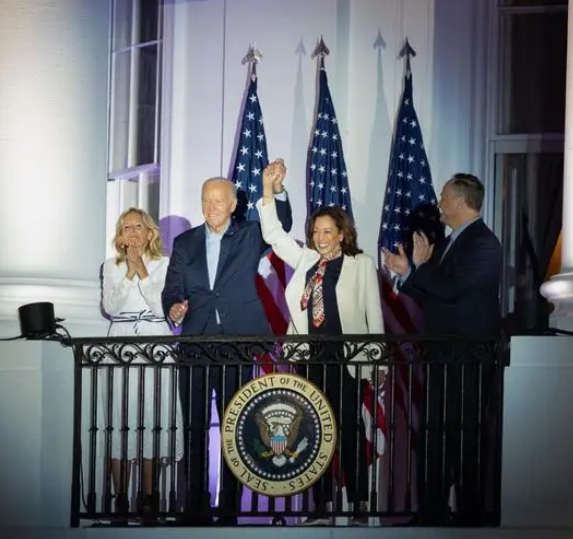 7月4日に米ワシントンのホワイトハウスで撮影されたバイデン米大統(tǒng)領(lǐng)(左から2人目)とハリス副大統(tǒng)領(lǐng)(右から2人目)。新華社記者胡友松摂