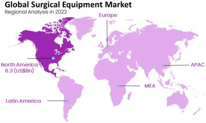 根據地區分類,全球手術設備市場分為北美、歐洲、亞太、拉丁美洲和中東及非洲。在這些地區中,北美地區主導了全球市場,占據了38.0%的市場份額。